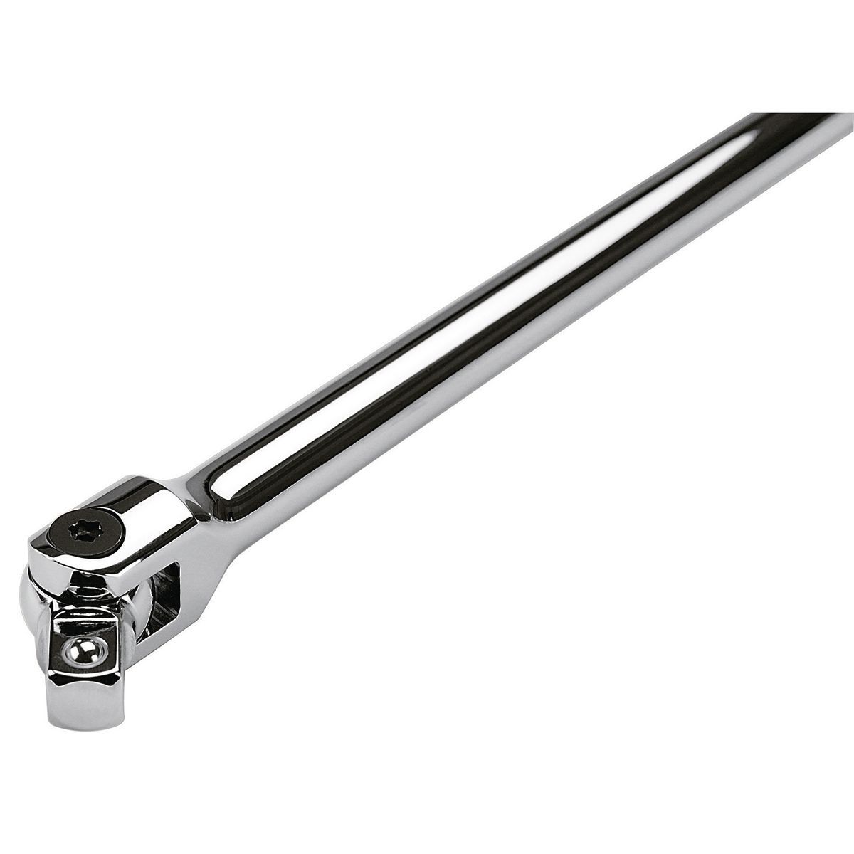 Esta barra rompedora profesional ICON™ resiste el uso más duro en el taller. La construcción de acero de alta aleación le da a esta barra rompedora de 3/8 pulg. la fuerza para manejar trabajos difíciles. El extremo impulsor de la barra rompedora tiene un pivote de 180° para obtener el mejor ángulo en su trabajo. Un agarre TPR antideslizante le brinda un agarre firme para un par máximo.