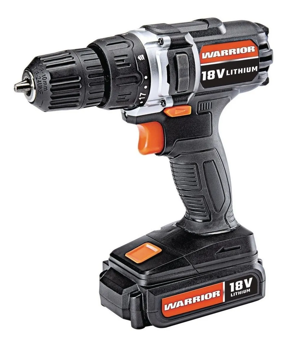 Taladro Atornillador Inalambrico Warrior – Este taladro atornillador inalámbrico tiene 20 configuraciones de embrague de torsión para manejar tareas de perforación en el hogar y el taller. Una lámpara LED incorporada proporciona visibilidad en rincones oscuros. Este taladro atornillador inalámbrico incluye una batería que es intercambiable con otras herramientas Warrior® de 18 voltios.